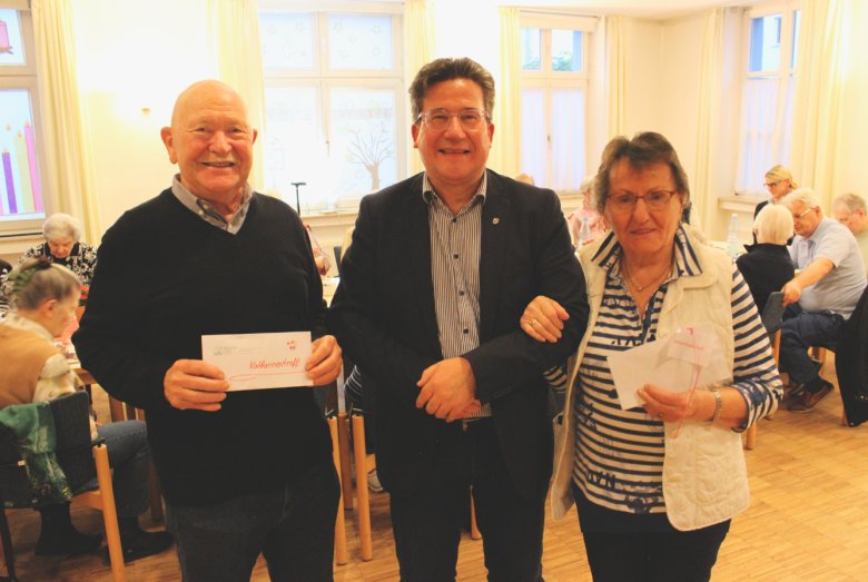 Der zweite Umschlag enthielt eine Aufmerksamkeit des Seniorenbeirates der Verbandsgemeinde. Die Mitglieder des Beirates hatten beschlossen ihr Sitzungsgeld an die Helferinnen und Helfer der Gemeindecafés und des KatharinenTreffs weiterzugeben. „Dieses Geld ist extra nur für die ehrenamtlichen Helfer gedacht“, erklärte Bürgermeister Becker an Ingrid Kramer und Karl-Heinz Hausen gewandt. „Wir möchten, dass Sie, die das ganze Jahr für das Wohl der Besucherinnen und Besucher sorgen, sich auch einmal etwas Gutes tun. Sie haben es sich mehr als verdient einen netten Ausflug zu unternehmen oder gemütlich Essen zu gehen. Wer etwas gibt, bekommt auch immer etwas zurück von den Menschen.“